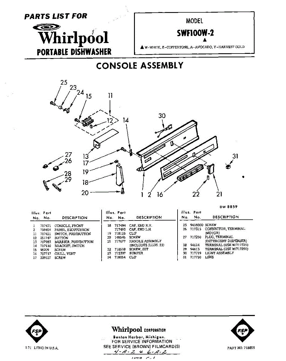 Parts for Whirlpool SWF100W2: 01 - Console Parts