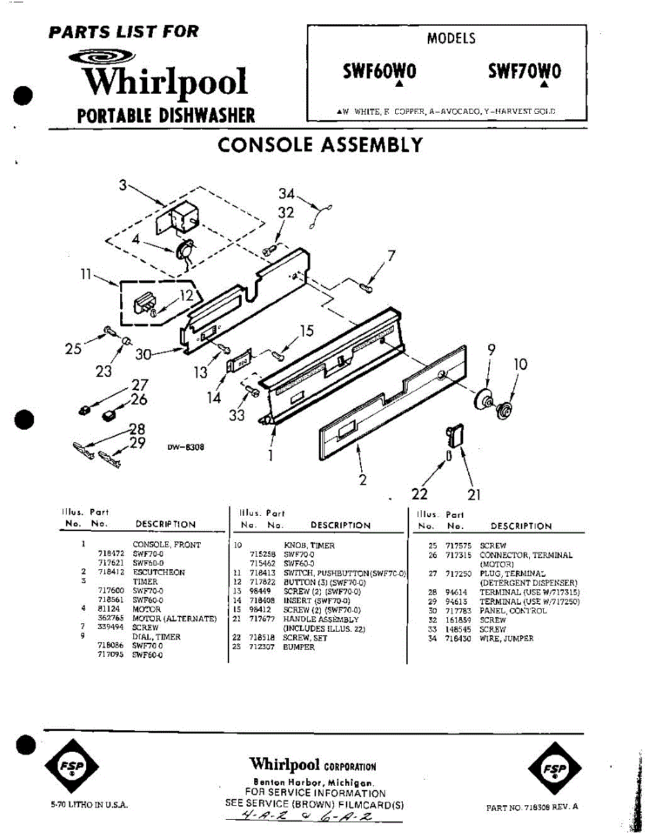 Parts for Whirlpool SWF70W0: 01 - Console Parts
