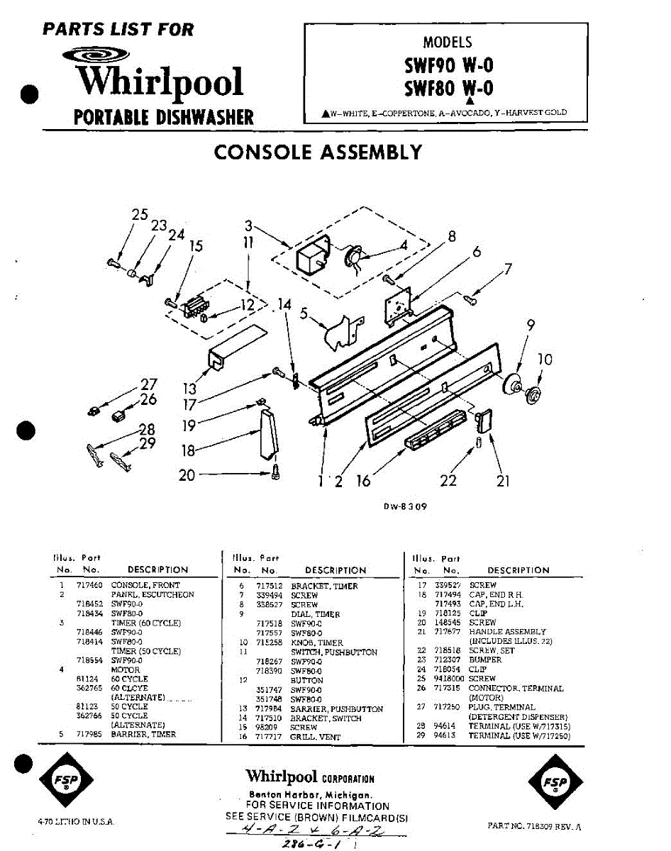 Parts for Whirlpool SWF80W0: 01 - Console Parts