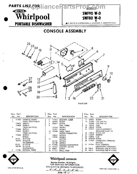 Parts for Whirlpool SWF90W0: 01 - Console Parts