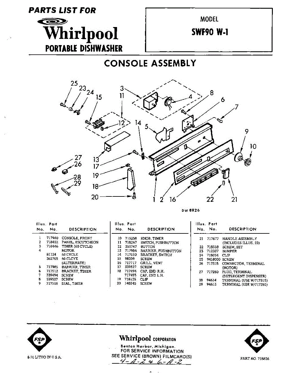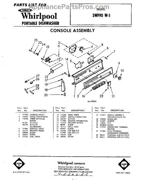 Parts for Whirlpool SWF90W1: 01 - Console Parts