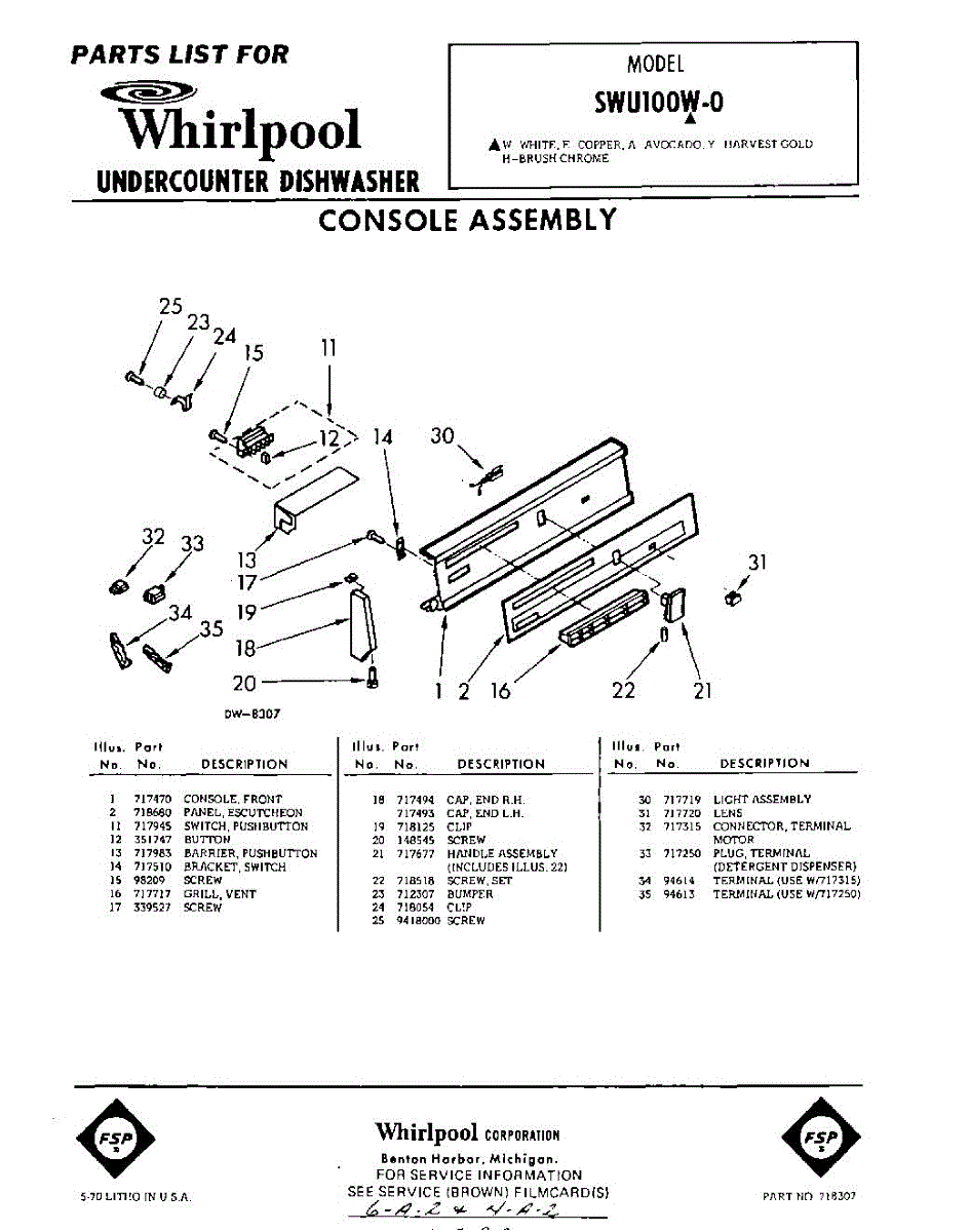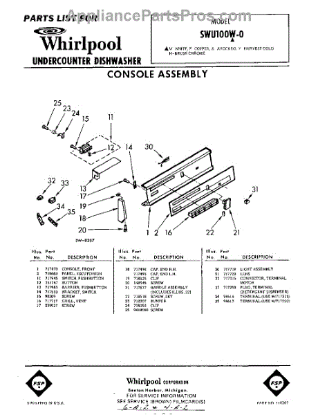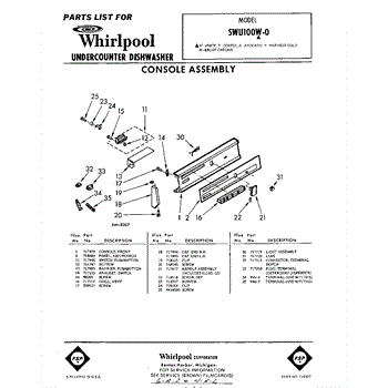 Parts for Whirlpool SWU100W0: 01 - Console Parts