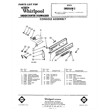 Parts for Whirlpool SWU100W2: 01 - Console Parts