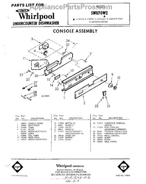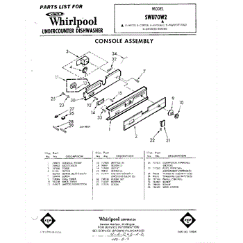 Parts for Whirlpool SWU70W2: 01 - Console Parts