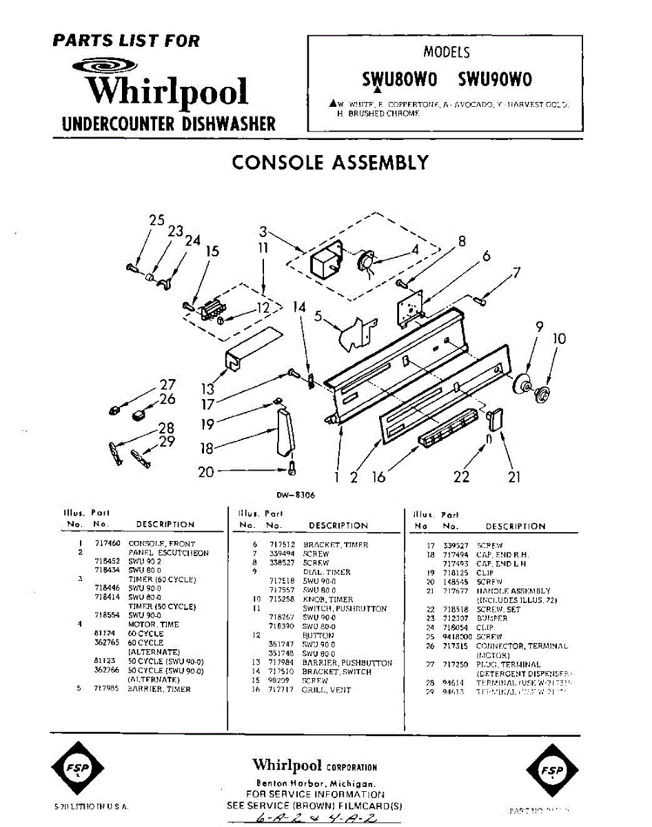 Parts for Whirlpool SWU80W0: 01 - Console Parts