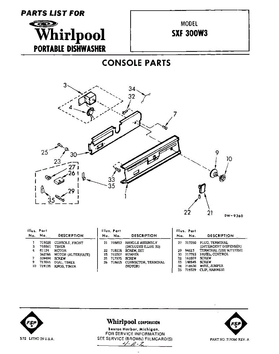 Parts for Whirlpool SXF300W3: 01 - Console Parts