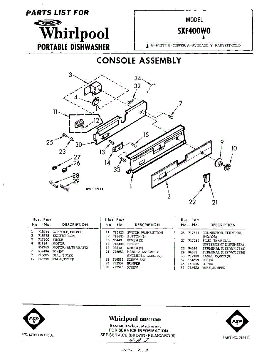 Parts for Whirlpool SXF400W0: 01 - Console Parts