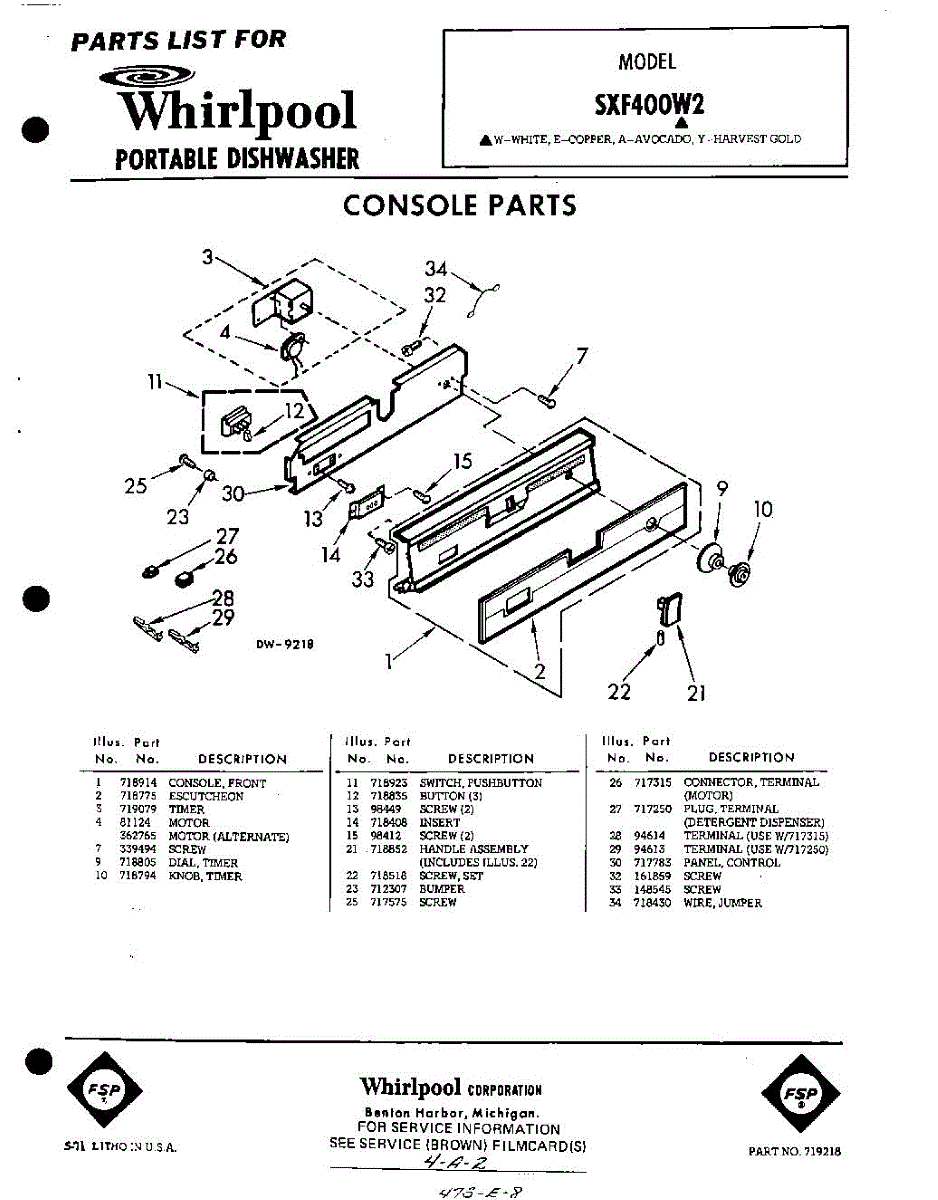 Parts for Whirlpool SXF400W2: 01 - Console Parts