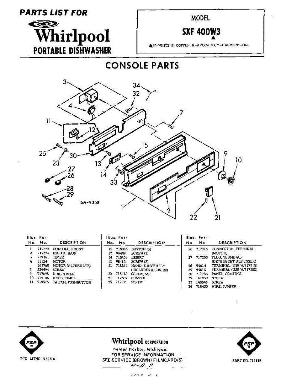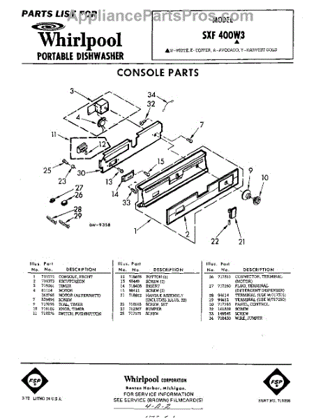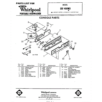 Parts for Whirlpool SXF400W3: 01 - Console Parts