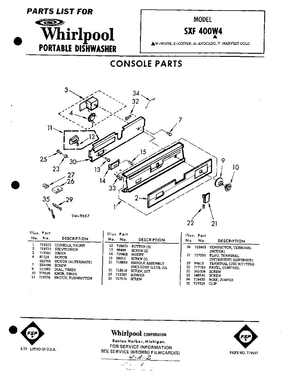 Parts for Whirlpool SXF400W4: 01 - Console Parts