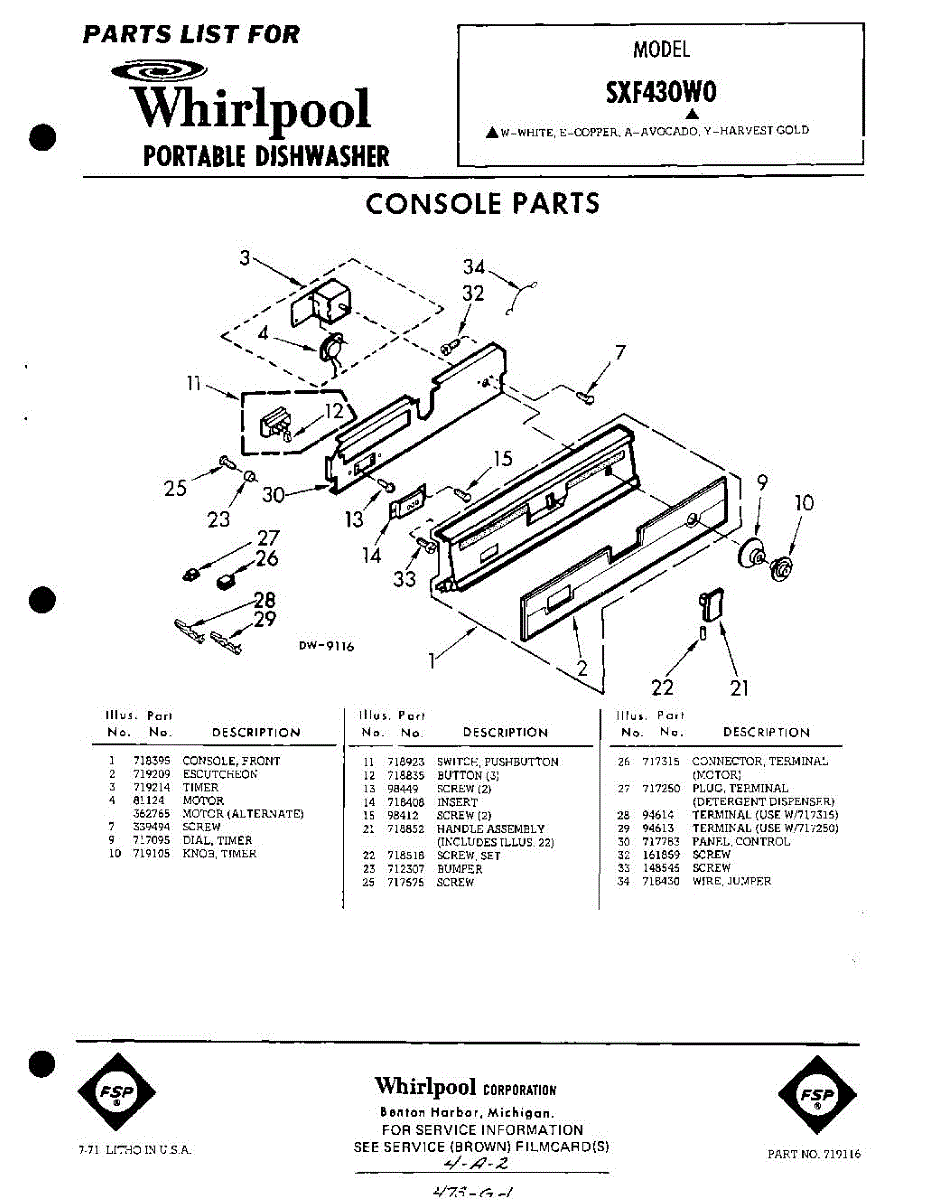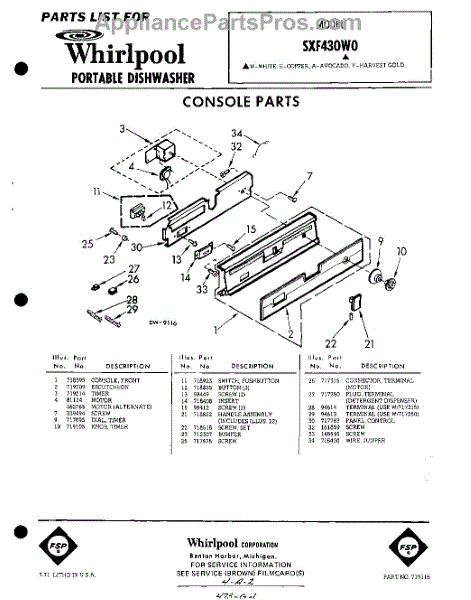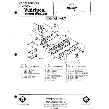 Parts for Whirlpool SXF430W0: 01 - Console Parts