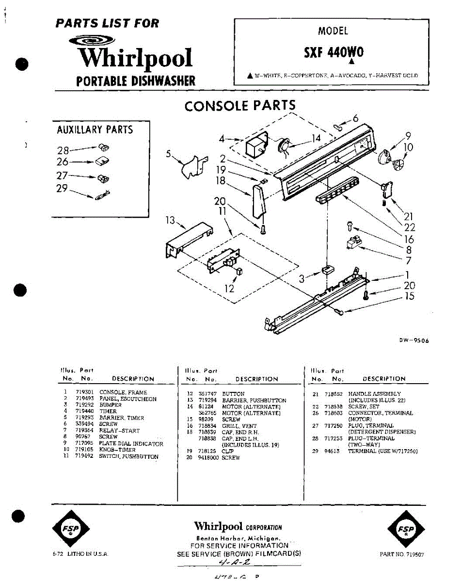 Parts for Whirlpool SXF440W0: 01 - Console Parts