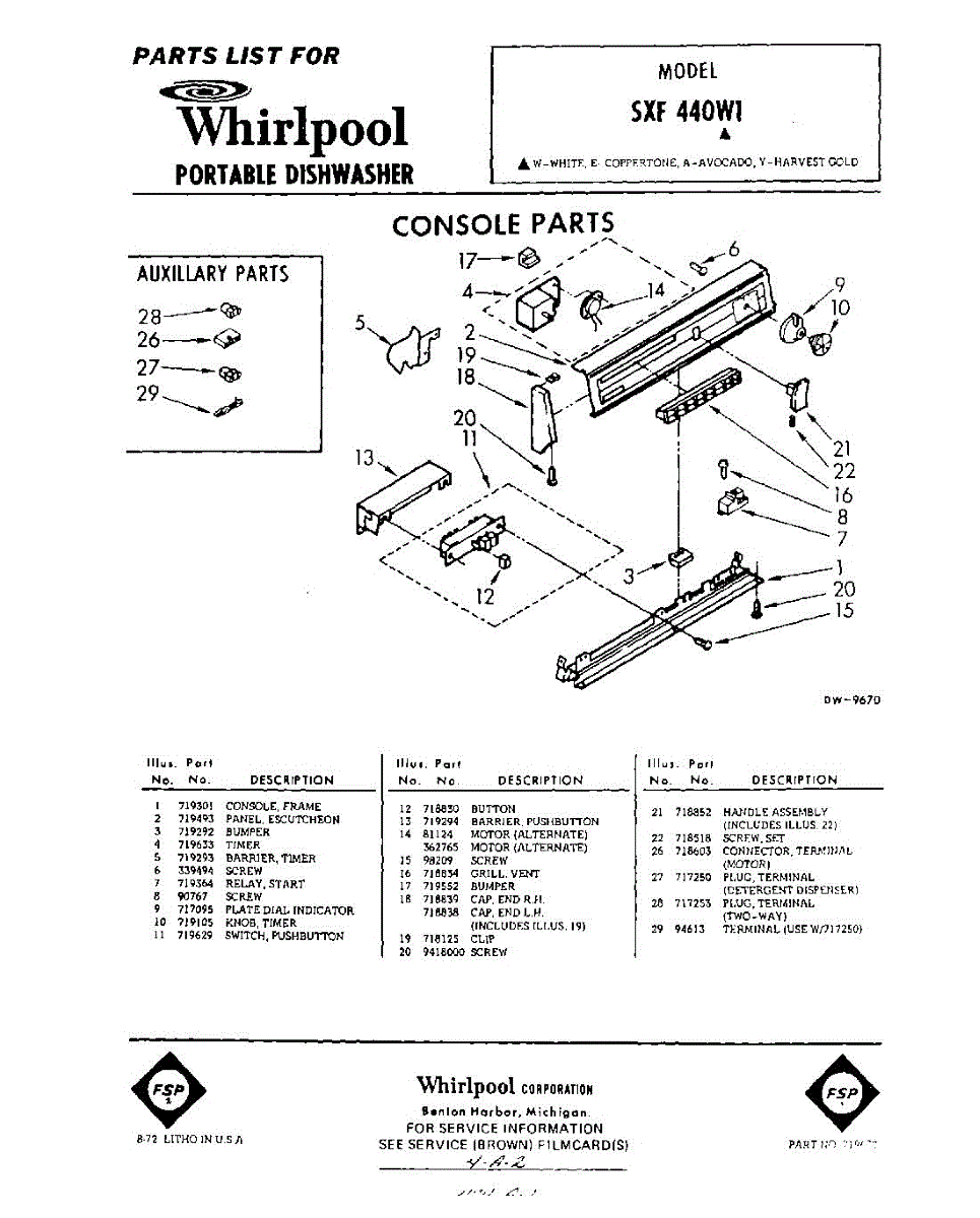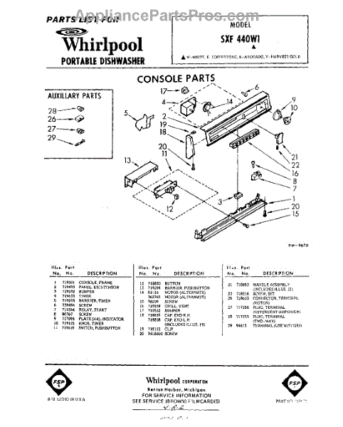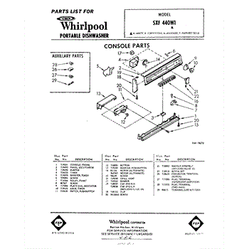 Parts for Whirlpool SXF440W1: 01 - Console Parts
