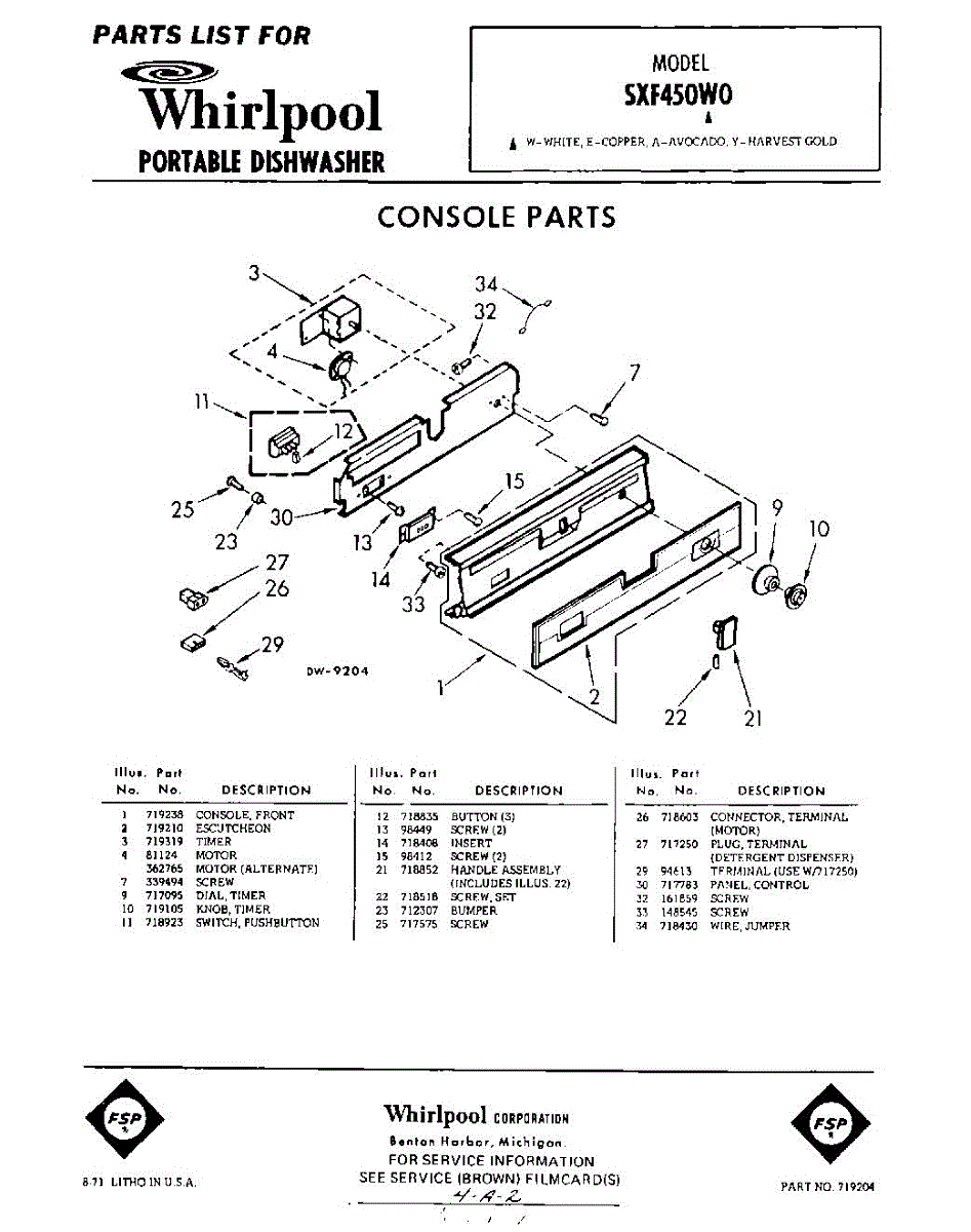 Parts for Whirlpool SXF450W0: 01 - Console Parts