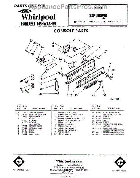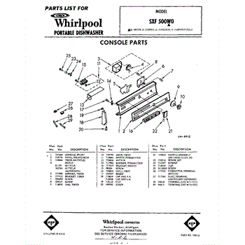 Parts for Whirlpool SXF500W0: 01 - Console Parts