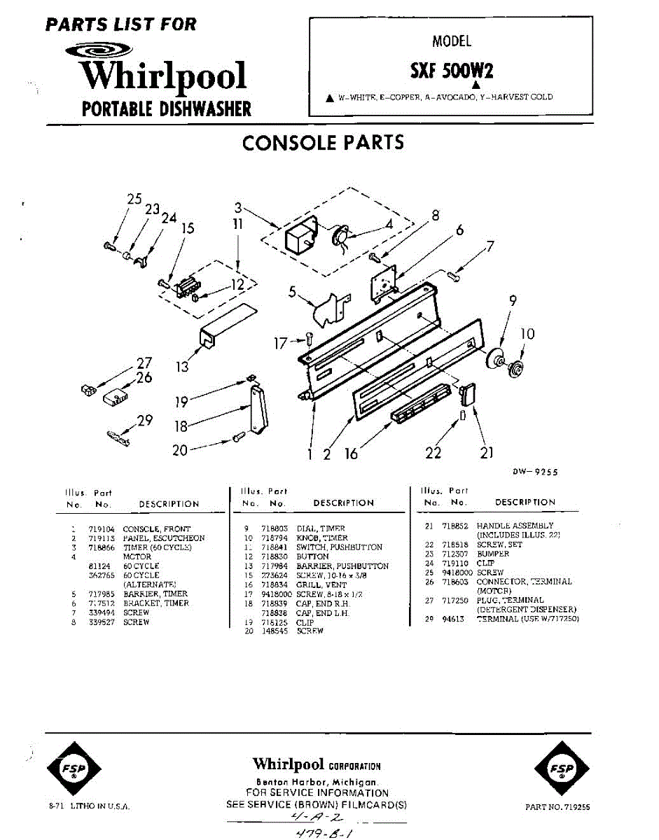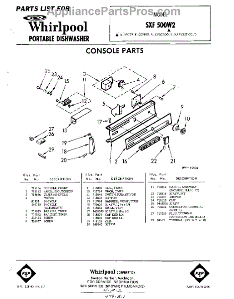 Parts for Whirlpool SXF500W2: 01 - Console Parts