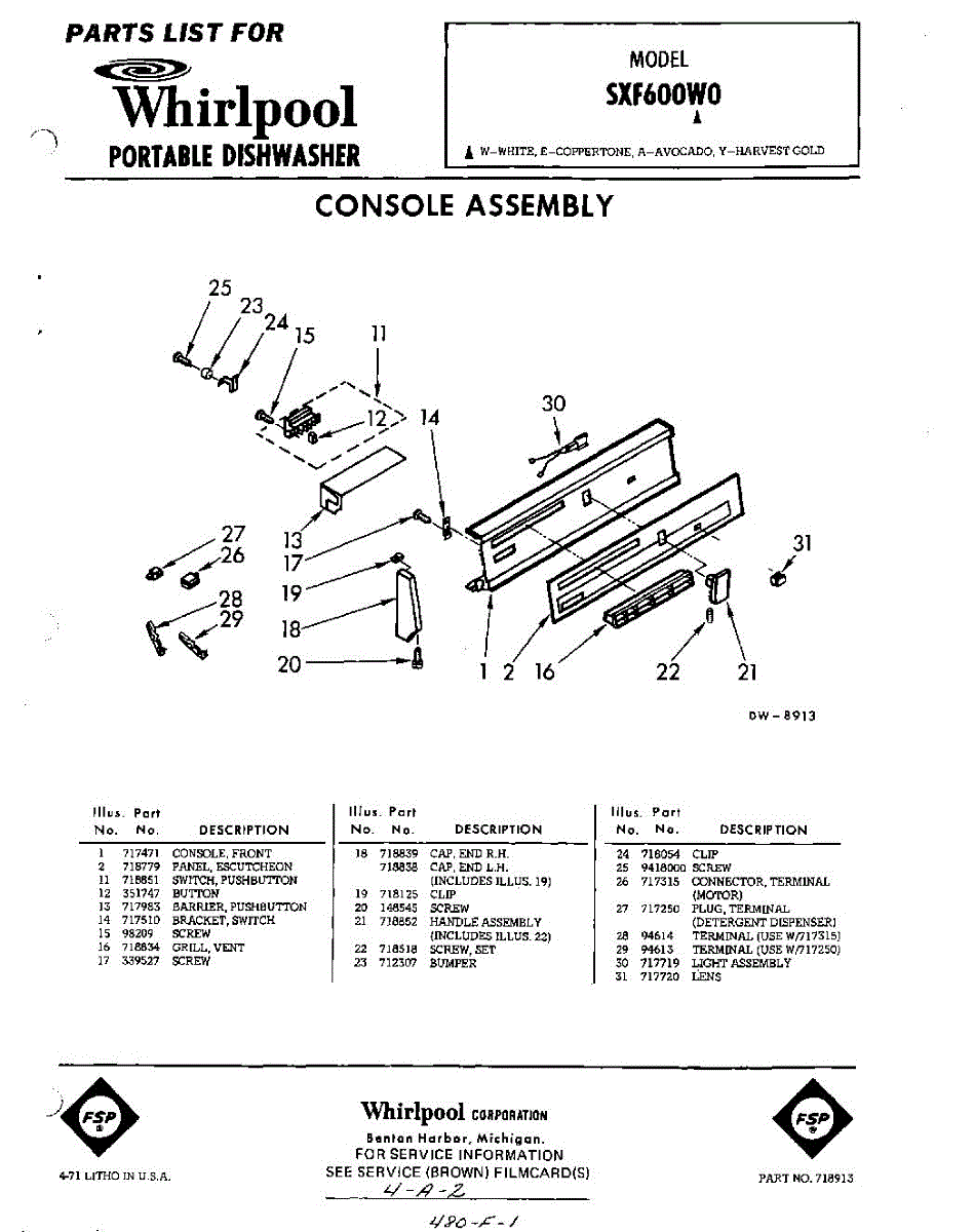 Parts for Whirlpool SXF600W0: 01 - Console Parts