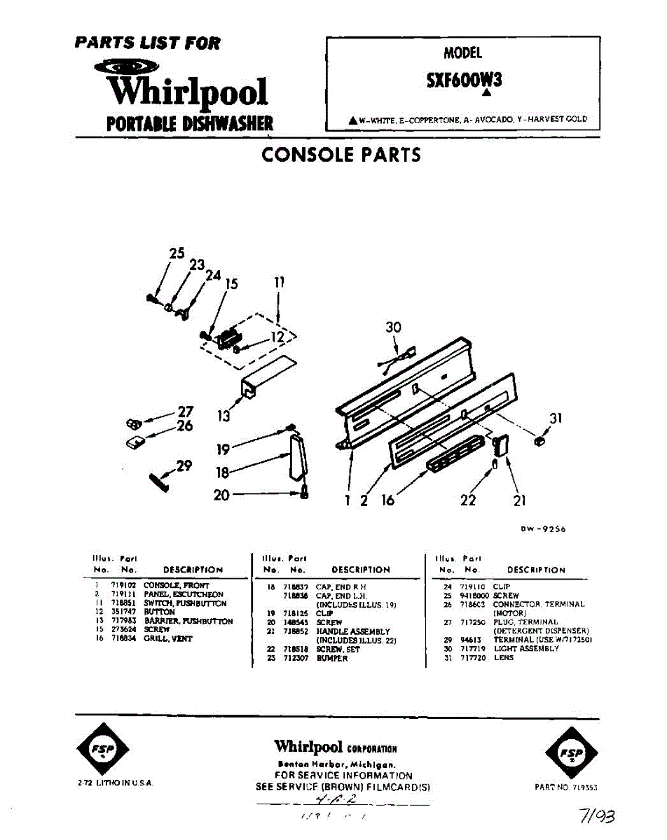 Parts for Whirlpool SXF600W3: 01 - Console Parts