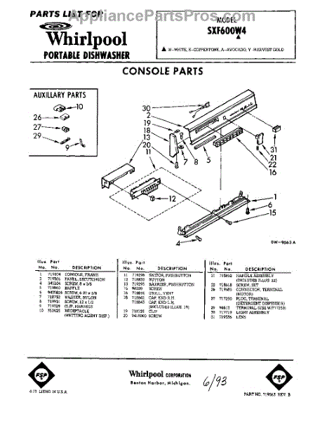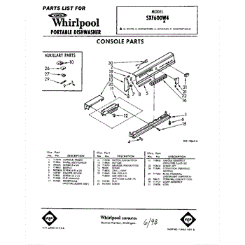 Parts for Whirlpool SXF600W4: 01 - Console Parts