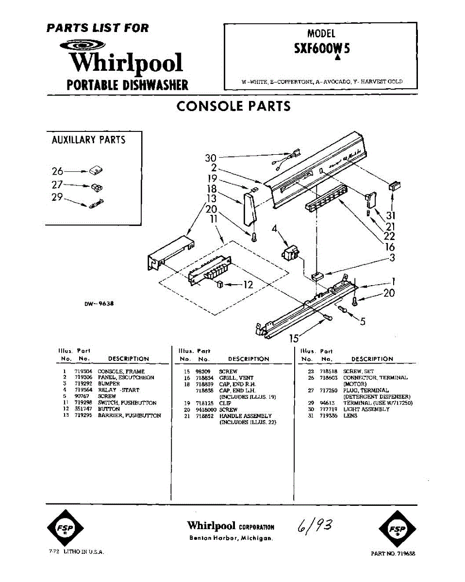 Parts for Whirlpool SXF600W5: 01 - Console Parts
