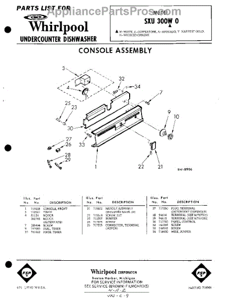 Parts for Whirlpool SXU300W0: 01 - Console Parts
