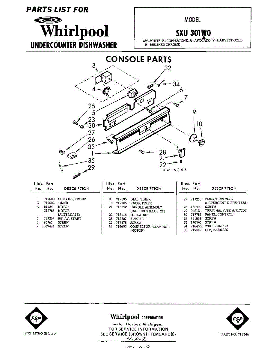 Parts for Whirlpool SXU301W0: 01 - Console Parts