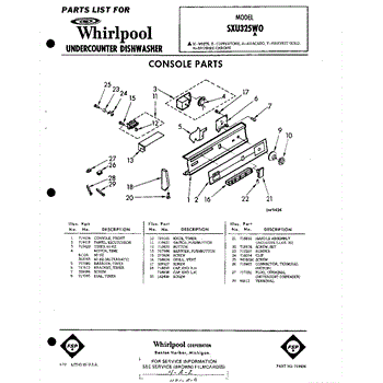 Parts for Whirlpool SXU325W0: 01 - Console Parts