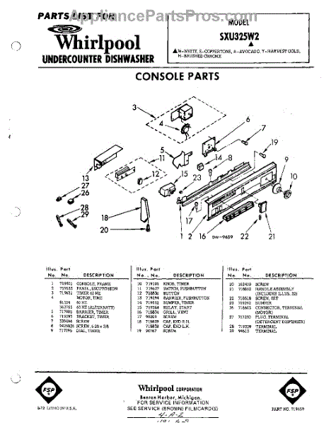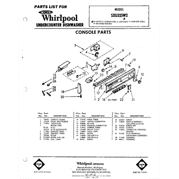Parts for Whirlpool SXU325W2: 01 - Console Parts