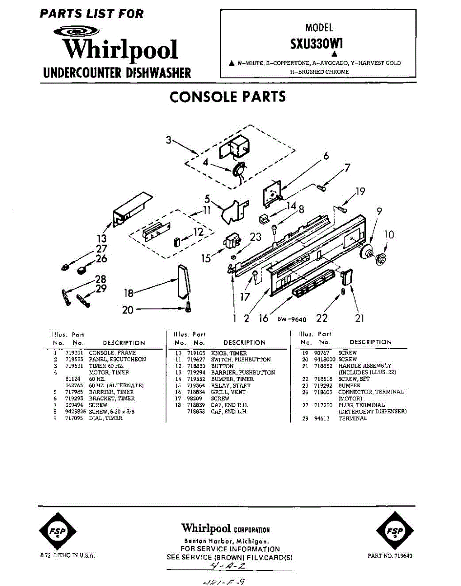 Parts for Whirlpool SXU330W1: 01 - Console Parts