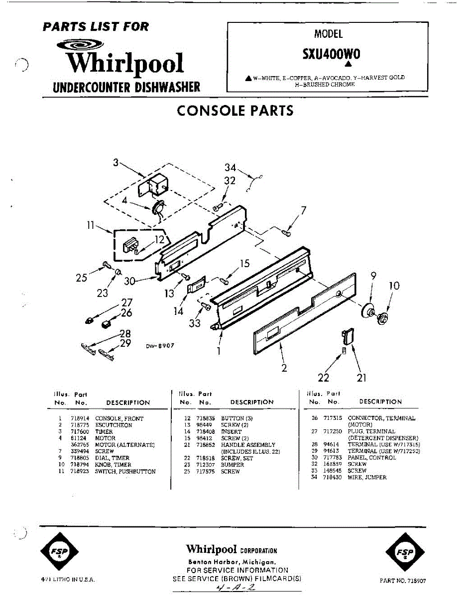 Parts for Whirlpool SXU400W0: 01 - Console Parts