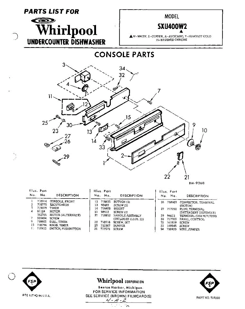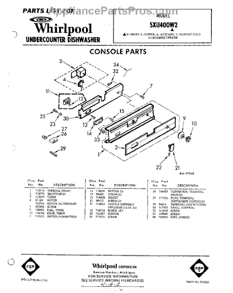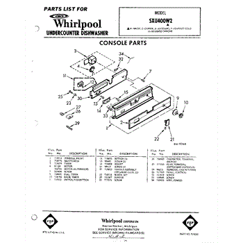 Parts for Whirlpool SXU400W2: 01 - Console Parts