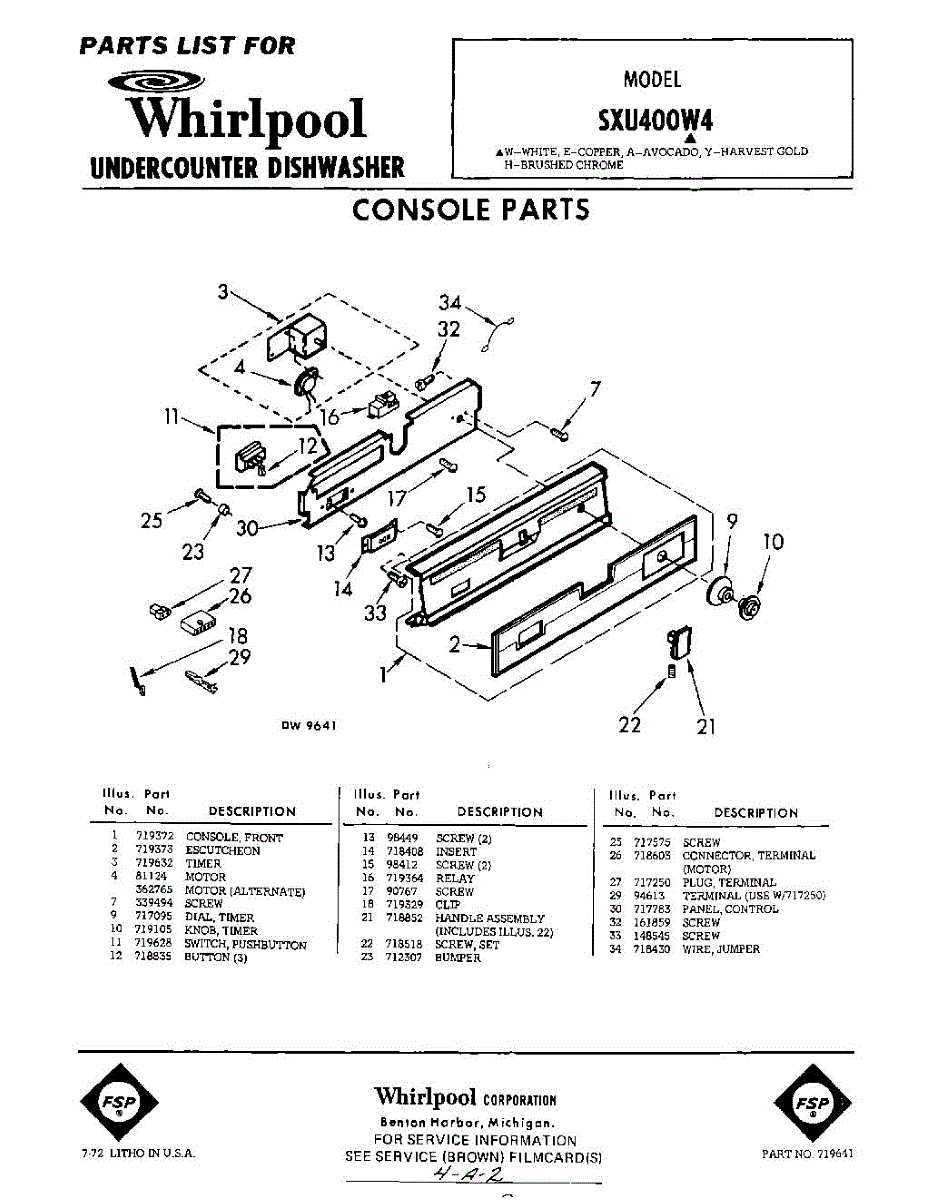 Parts for Whirlpool SXU400W4: 01 - Console Parts