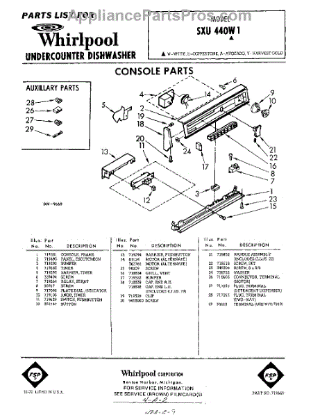 Parts for Whirlpool SXU440W1: 01 - Console Parts