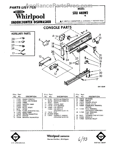 Parts for Whirlpool SXU440W2: 01 - Console Parts
