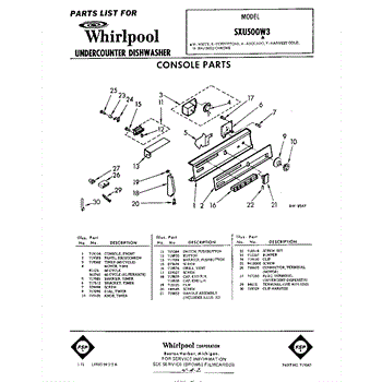 Parts for Whirlpool SXU500W3: 01 - Console Parts