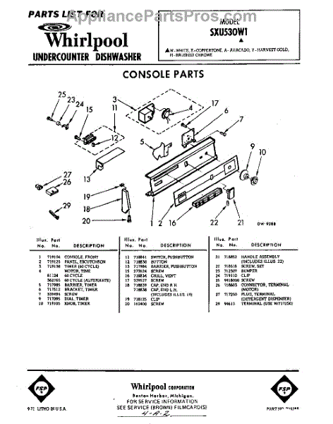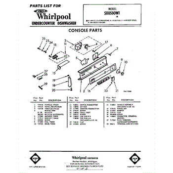 Parts for Whirlpool SXU530W1: 01 - Console Parts