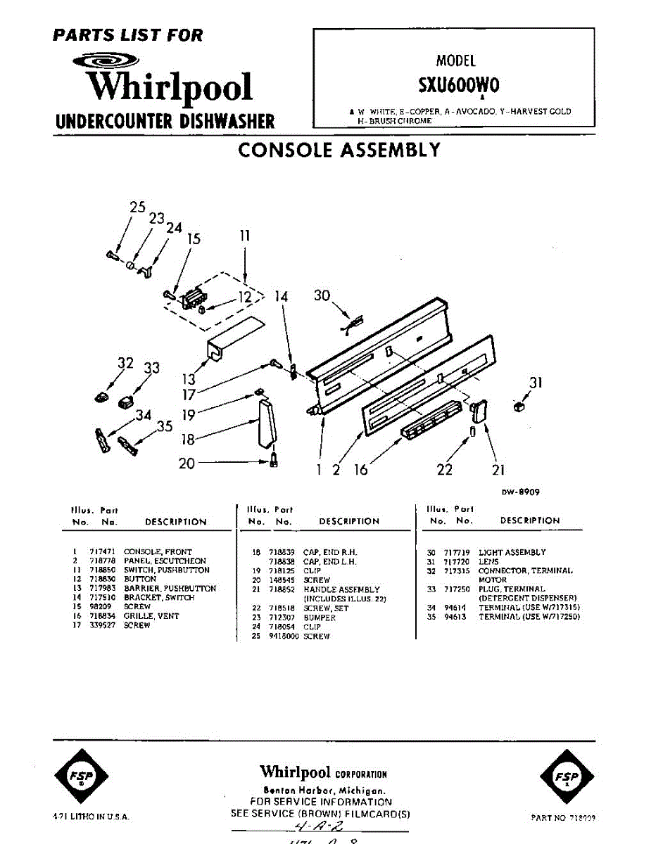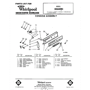 Parts for Whirlpool SXU600W0: 01 - Console Parts