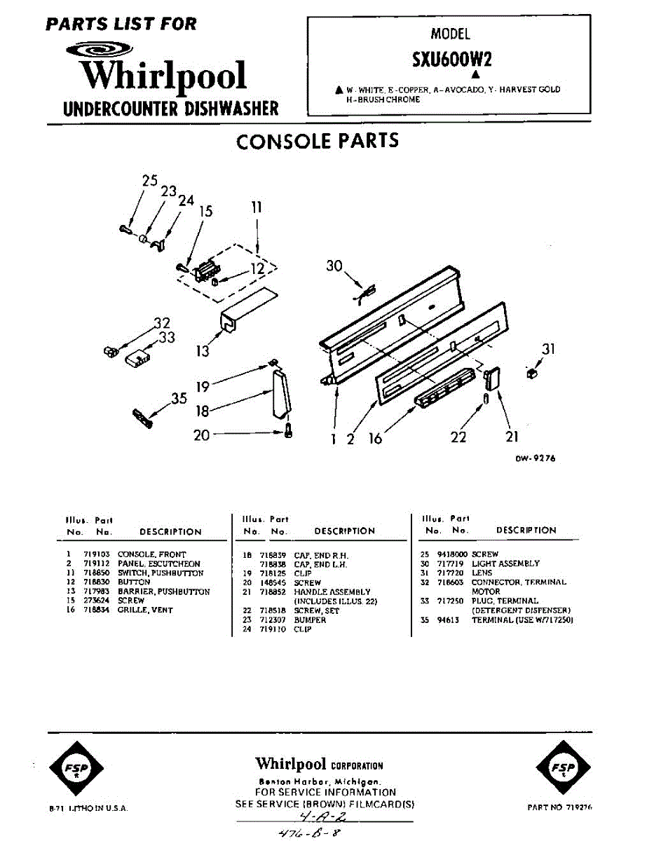 Parts for Whirlpool SXU600W2: 01 - Console Parts
