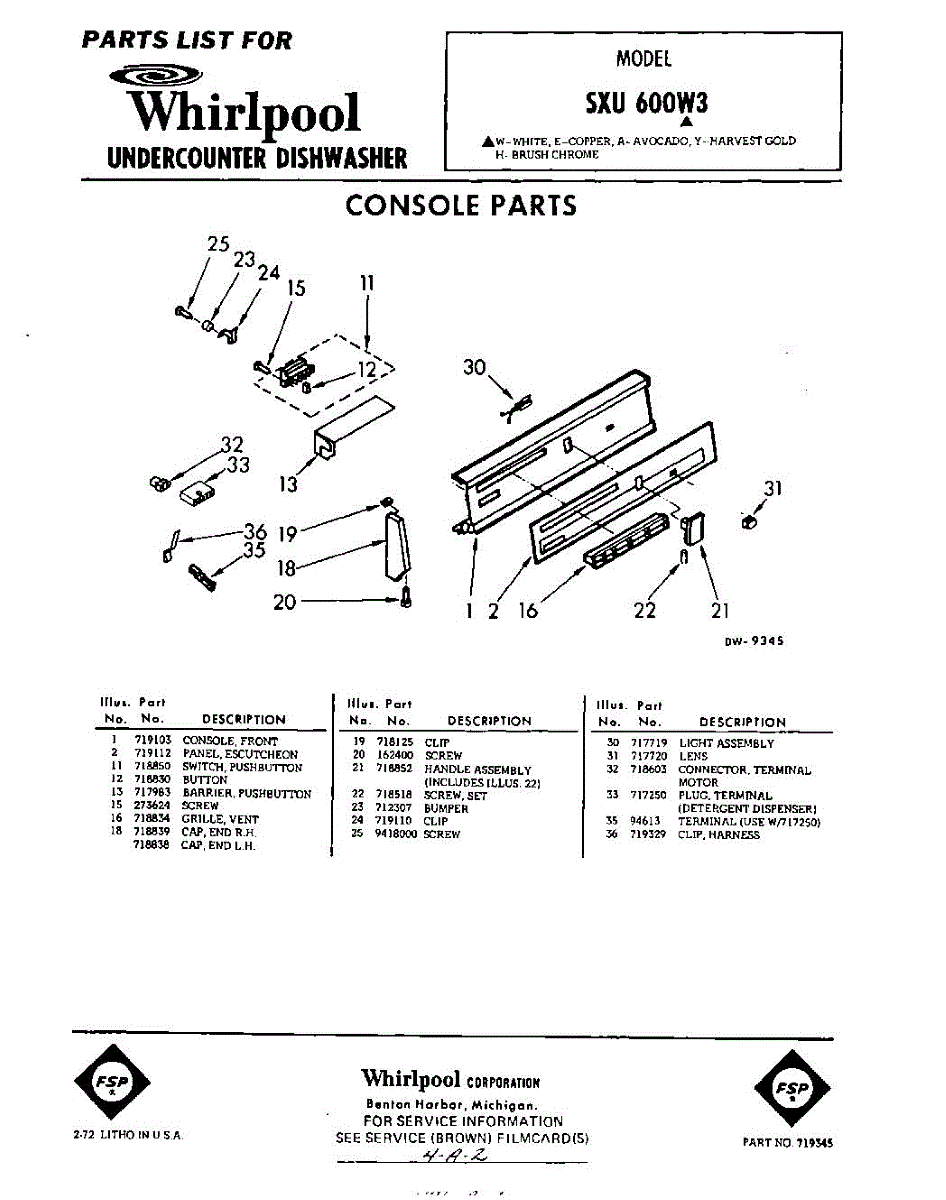 Parts for Whirlpool SXU600W3: 01 - Console Parts