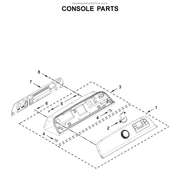 The Console Clip is an OEM part compatible with Whirlpool dryers. This clip secures the control console assembly to the top panel, ensuring it is firmly mounted during operation. Properly functioning clips are necessary to maintain the correct alignment of controls and prevent detachment.