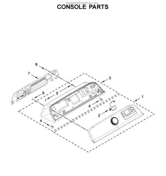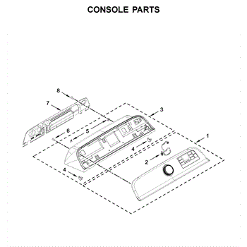 The Console Clip is an OEM part compatible with Whirlpool dryers. This clip secures the control console assembly to the top panel, ensuring it is firmly mounted during operation. Properly functioning clips are necessary to maintain the correct alignment of controls and prevent detachment.