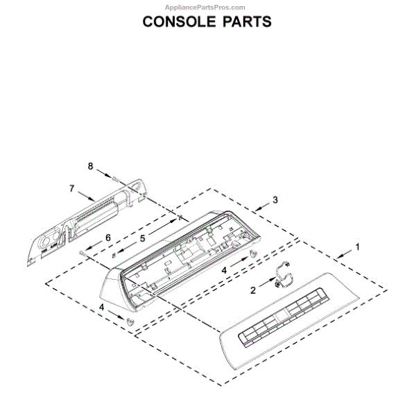 The Console Clip is an OEM part compatible with Whirlpool dryers. This clip secures the control console assembly to the top panel, ensuring it is firmly mounted during operation. Properly functioning clips are necessary to maintain the correct alignment of controls and prevent detachment.
