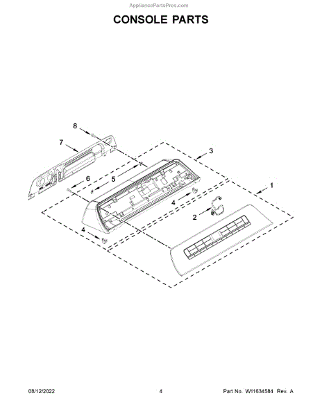 The Console Clip is an OEM part compatible with Whirlpool dryers. This clip secures the control console assembly to the top panel, ensuring it is firmly mounted during operation. Properly functioning clips are necessary to maintain the correct alignment of controls and prevent detachment.