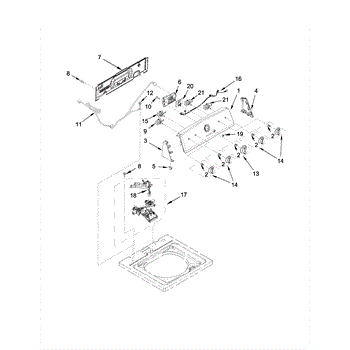 The Console Clip is an OEM part compatible with Whirlpool dryers. This clip secures the control console assembly to the top panel, ensuring it is firmly mounted during operation. Properly functioning clips are necessary to maintain the correct alignment of controls and prevent detachment.
