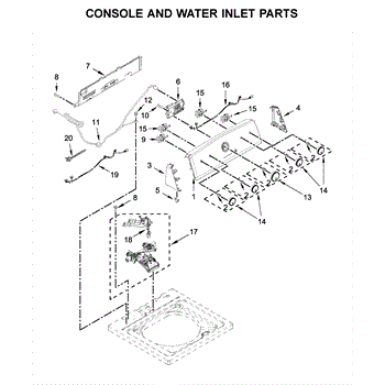The Console Clip is an OEM part compatible with Whirlpool dryers. This clip secures the control console assembly to the top panel, ensuring it is firmly mounted during operation. Properly functioning clips are necessary to maintain the correct alignment of controls and prevent detachment.