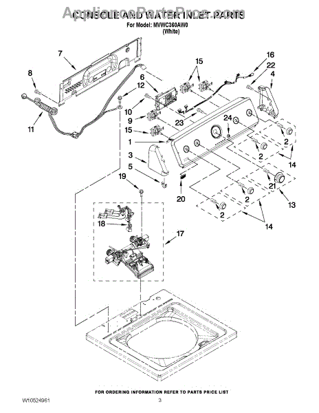 The Water Inlet Valve is an OEM part for Whirlpool washing machines. This valve controls the flow of water into the washer, allowing it to fill with the correct amount of water during the wash and rinse cycles.