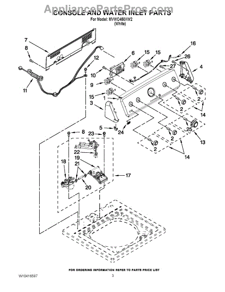 Parts for Maytag MVWC450XW2: 02 - Console And Water Inlet Parts