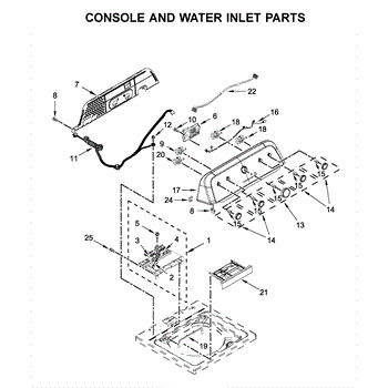 The Console Clip is an OEM part compatible with Whirlpool dryers. This clip secures the control console assembly to the top panel, ensuring it is firmly mounted during operation. Properly functioning clips are necessary to maintain the correct alignment of controls and prevent detachment.