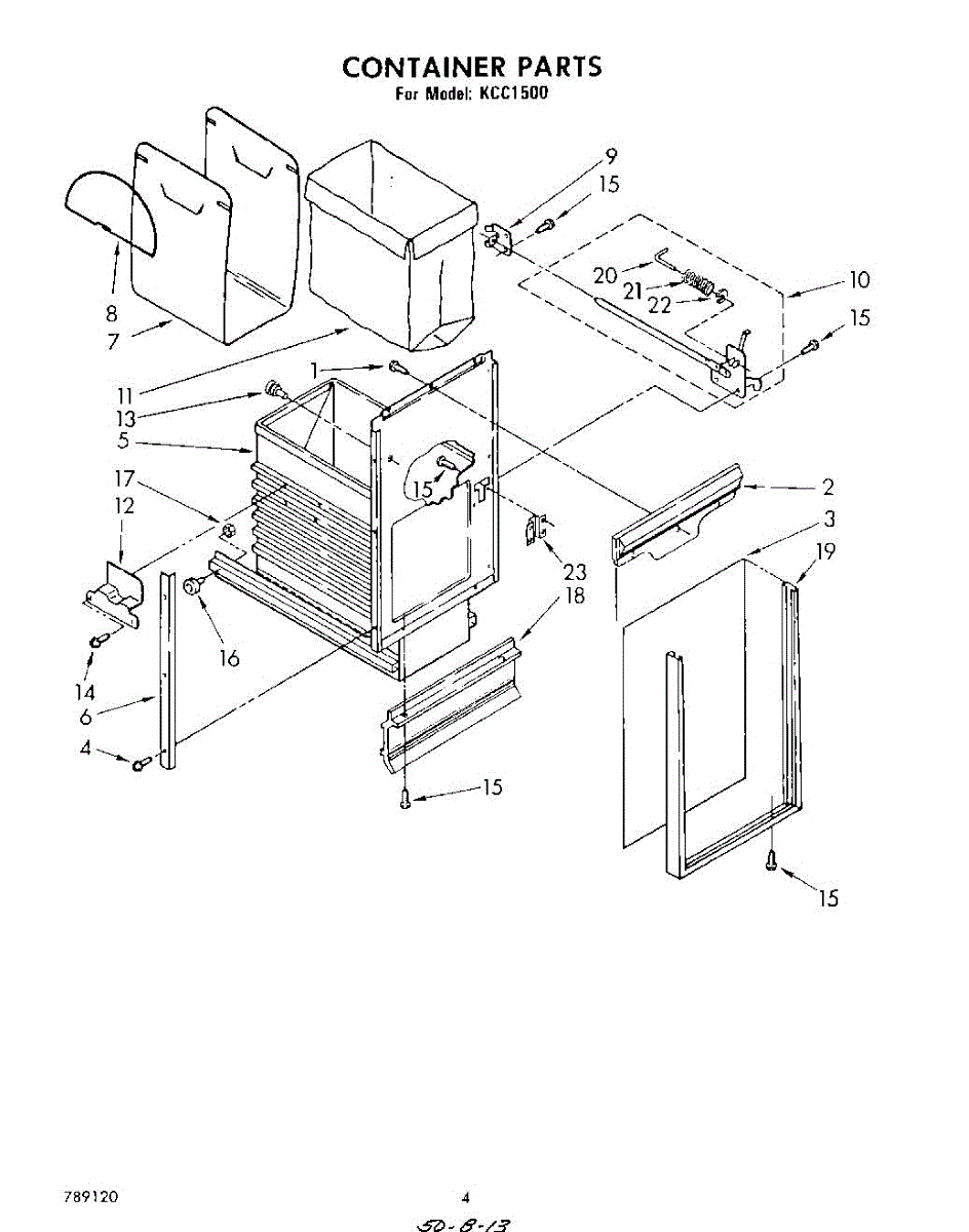 Bag carrier handle assembly for trash compactors. Secures the disposable liner bag in place. Replace if cracked, broken, or missing to restore safe bag handling.