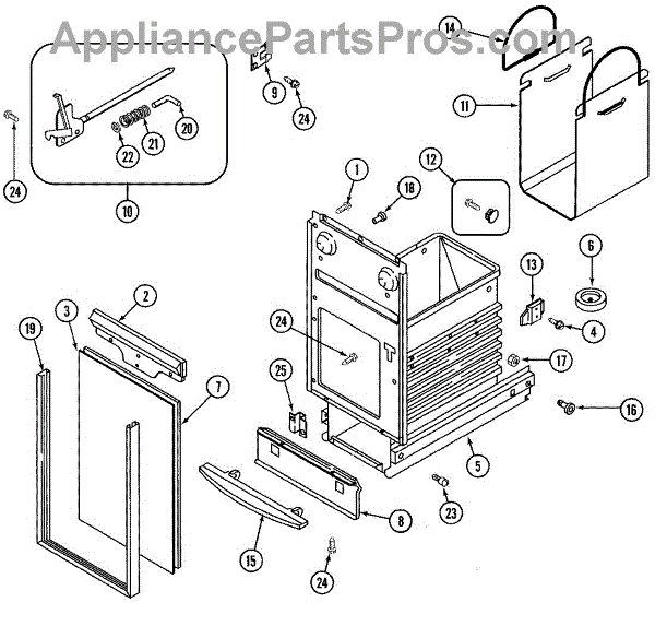This latch plate secures the appliance door to the cabinet, providing the positive engagement needed for proper door closure and operation. It helps restore a door that won't stay closed or won't trigger door switches. What it does: